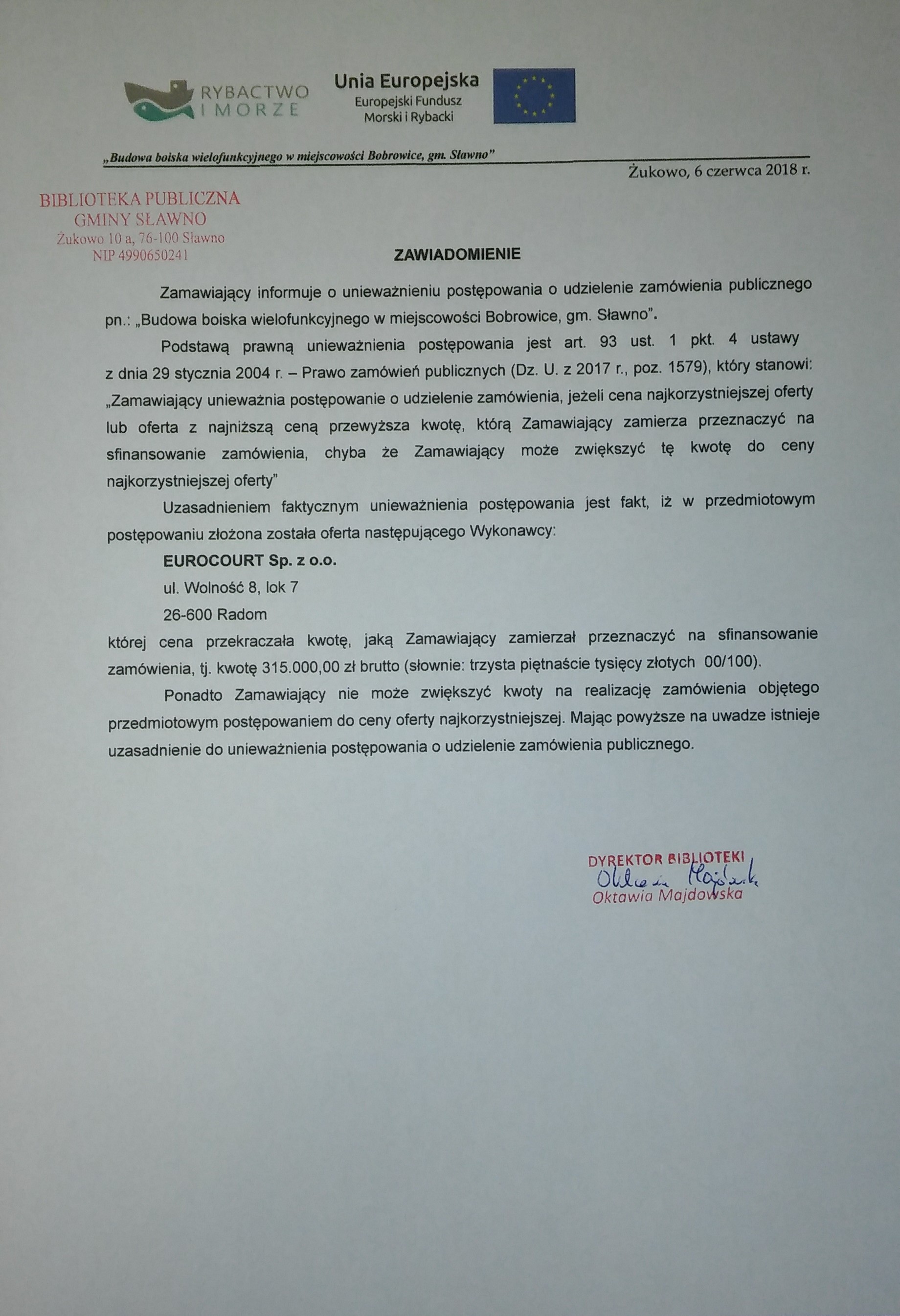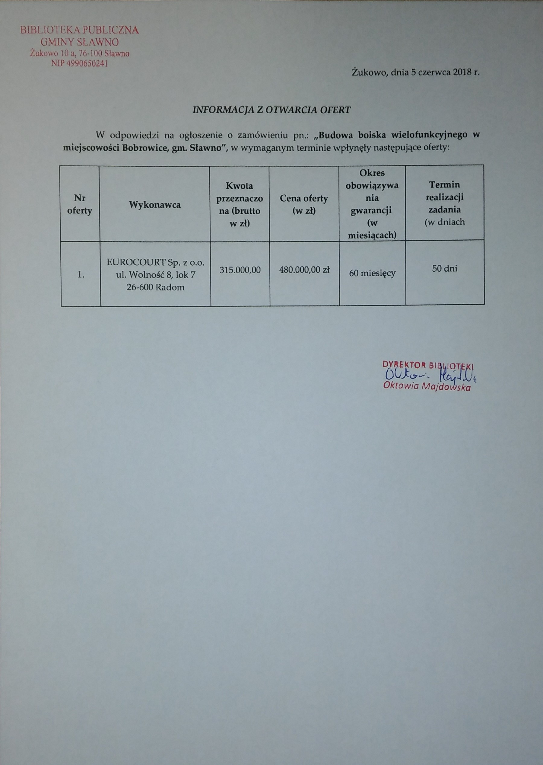 Budowa boiska wielofunkcyjnego w miejscowości Bobrowice, gm. Sławno